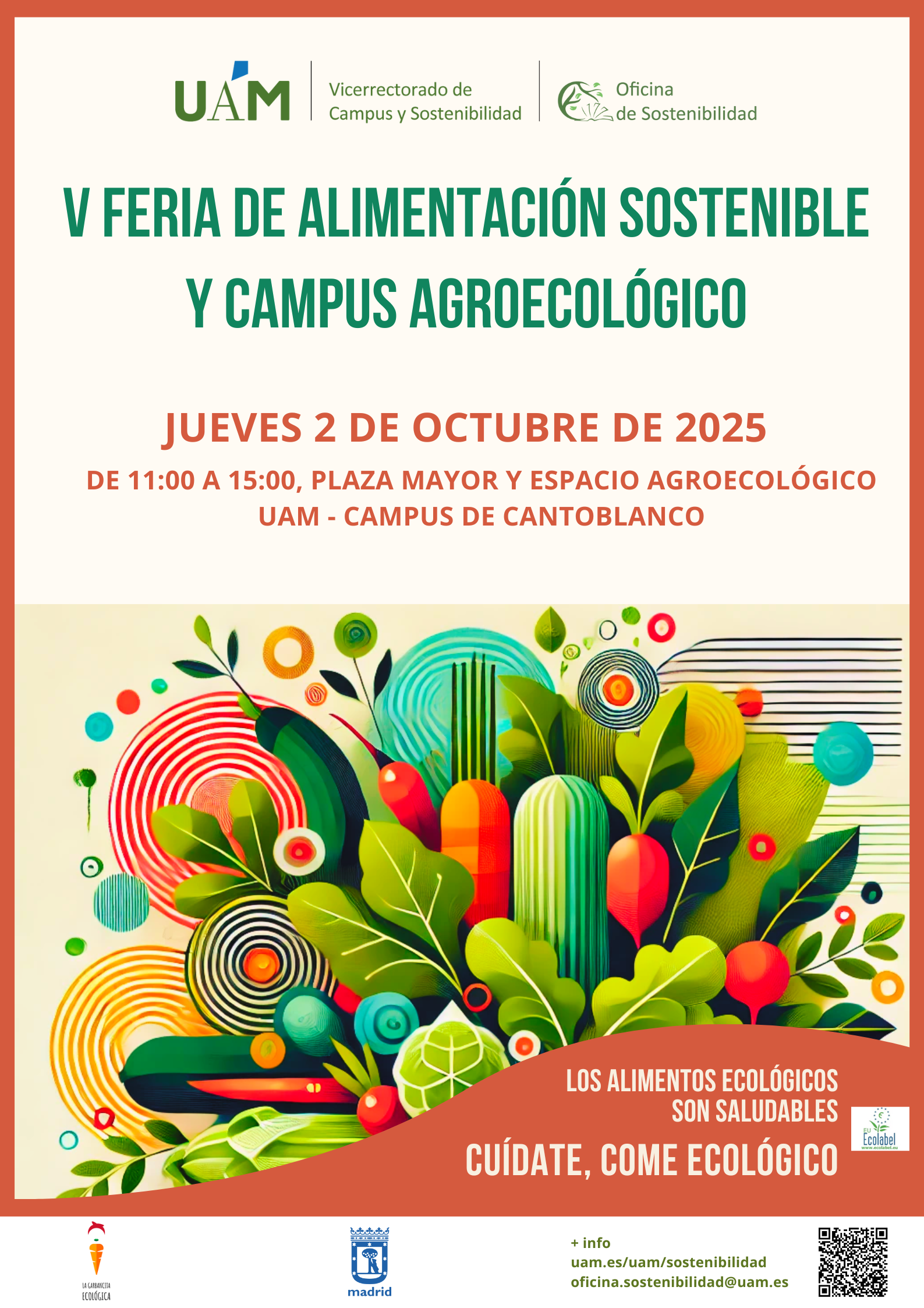 Por ello, como primera actividad, desde la Oficina de Sostenibilidad de la UAM se ha organizo, para el día 2 de octubre, desde las 11 hasta las 15 horas, la V Feria de Alimentación Sostenible y Campus Agroecológico.